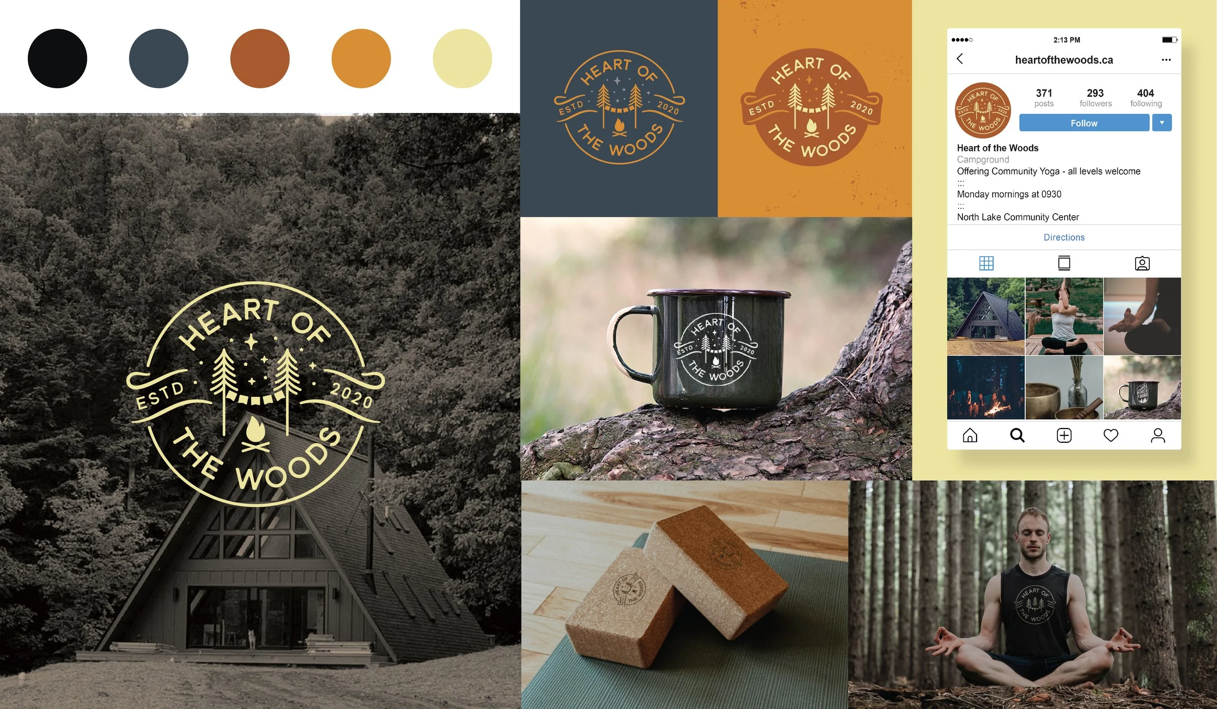 For the Heart of the Woods Yoga Retreat Center, I had the opportunity to create a logo that captured the tranquil essence of nature while also reflecting the spiritual and meditative focus of the retreat. The client requested the inclusion of two iconic pine trees and prayer flags, elements that symbolize strength, peace, and connection to the earth. These components were thoughtfully incorporated into a harmonious design that speaks to the serenity and grounded energy of the retreat. The final logo features two symmetrical pine trees, symbolizing balance and resilience, flanking a string of gently flowing prayer flags.